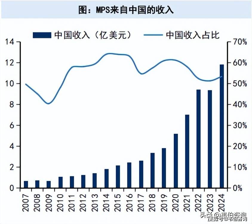 MPS2024年来自中国的收入约12亿美元,同比增长26%,收入占比53%(按发货地统计)。
