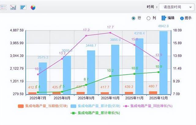 最近,国家统计局公布了2025年的数据,一个数字让人眼前一亮:2025年,中国一共生产了4842.8亿块集成电路,也就是芯片。算下来,平均每天就有13.3亿颗芯片从中国的生产线上下来!